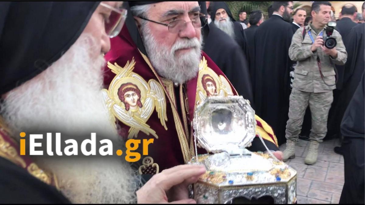 Την Τιμία Κάρα μετέφερε ο καθηγούμενος της ΙΜΜ Βατοπαιδίου αρχιμανδρίτης Εφραίμ , συνοδεία Βατοπαιδινών πατέρων και υποδέχθηκε ο Πανιερώτατος Μητροπολίτης Κιτίου κ Χρυσόστομος μετά πλειάδος ιερέων και πλήθος του ευσεβούς λαού.