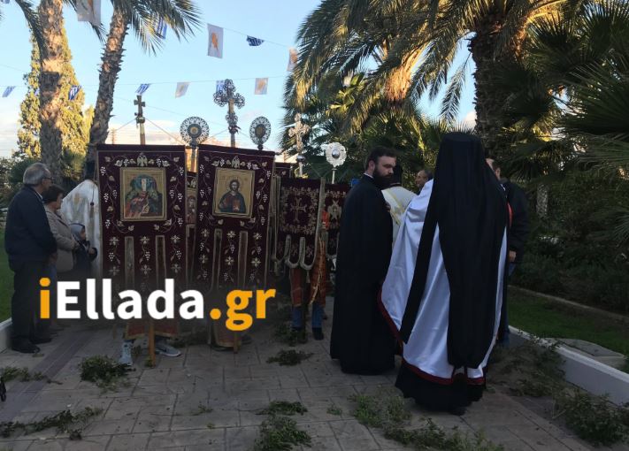 Τελέσθηκε πανηγυρικός εσπερινός από τον τοπικό επίσκοπο και συμπροσευχήθηκε ο καθηγούμενος της Ιεράς Μεγίστης Μονής Βατοπαιδίου.