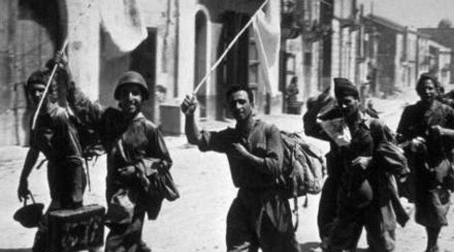 Η Ιταλία «παραδίδει τα όπλα» κι επισήμως. Στην Αθήνα και στις άλλες πόλεις, οι Έλληνες μόλις πληροφορούνται την είδηση αρχίζουν να πανηγυρίζουν. Μαζί τους και πολλοί Ιταλοί που είναι αντίθετοι στον Μουσολίνι και στο φασιστικό καθεστώς της χώρας τους.