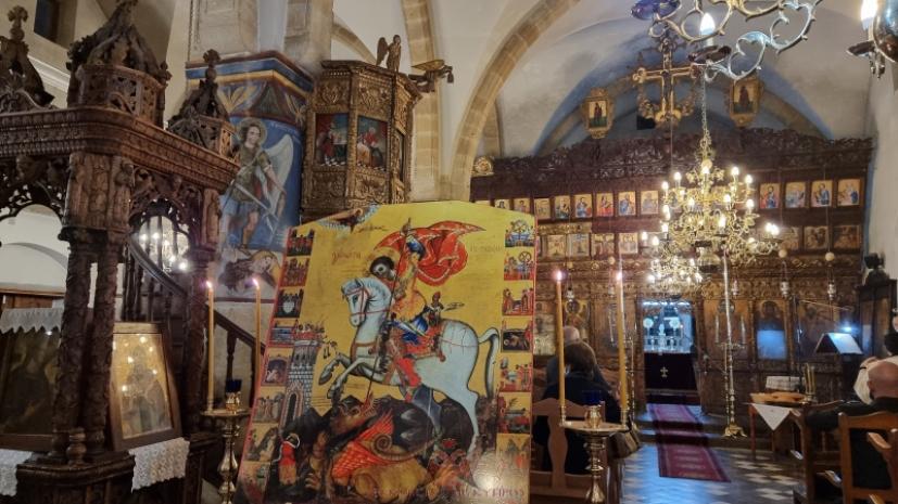 Η Ιερά Αρχιεπισκοπή ανακοινώνει ότι η Εκκλησιαστική Επιτροπή Αγίου Γεωργίου παλαιάς Λευκωσίας (Νεκρή Ζώνη) σε συνεργασία με την Εκκλησιαστική Επιτροπή Αγίου Κασσιανού, εορτάζουν τον Άγιο Γεώργιο, 2 και 3 Νοεμβρίου 2025, και προσκαλούν τους κατοίκους της παλαιάς Λευκωσίας και όλους τους πιστούς, ιδιαίτερα των κατεχομένων Ενοριών και Κοινοτήτων της Αρχιεπισκοπικής, στον εορτασμό. Την Κυριακή, 2 Νοεμβρίου 2025, στις 5.00 μ.μ., θα τελεστεί Μέγας Πανηγυρικός Εσπερινός προϊστάμενου του Επισκόπου Μεσαορίας Γρηγόριου, στον Ι. Ν. Αγίου Κασσιανού και τη Δευτέρα, ανήμερα της εορτής της ανακομιδής των ιερών Λειψάνων του Αγίου Μεγαλομάρτυρος Γεωργίου του Τροπαιοφόρου, θα τελεστεί όρθρος και Θ. Λειτουργία στον ίδιο Ι. Ναό, όπου φυλάσσεται αντίγραφο της εικόνας του Αγίου Γεωργίου, η οποία φυγαδεύτηκε στη Μονή Μαχαιρά το 1974.