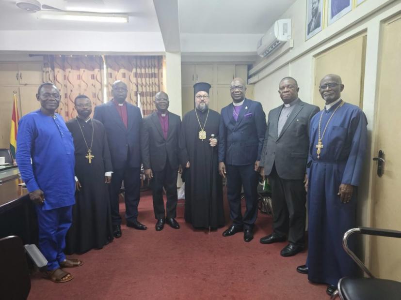 Ο Σεβασμιώτατος Μητροπολίτης Άκκρας κ. Δανιήλ, συνοδευόμενος από τον Πανοσ. Αρχιμανδρίτη Αιδέσιο Mukeke και τον Αιδεσιμολ. Μέγα Πρωτ. Kwame Joseph Labi, επισκέφτηκε την έδρα του Συμβουλίου Χριστιανικών Εκκλησιών της Γκάνα την Δευτέρα 19 Μαΐου 2025.