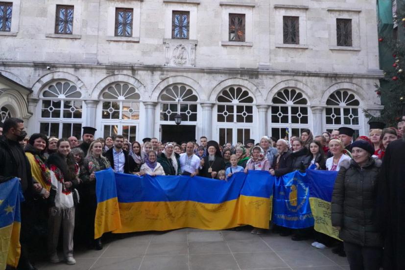 Tην συμπαράστασή του προς τον σκληρά δοκιμαζόμενο Ουκρανικό λαό εξέφρασε ο Οικουμενικός Πατριάρχης κ.κ. Βαρθολομαίος, ο οποίος υποδέχθηκε, την παραμονή των Χριστουγέννων, όμιλο περίπου 150 Ουκρανών προσκυνητών, από όλη την χώρα, μεταξύ των οποίων και πολλές γυναίκες των οποίων τα παιδιά, οι αδελφοί ή οι σύζυγοι είτε βρίσκονται στην πρώτη γραμμή του μετώπου, προασπιζόμενοι την εδαφική ακεραιότητα της πατρίδας τους και την ελευθερία του Ουκρανικού λαού, είτε έχασαν τη ζωή τους στο καθήκον.