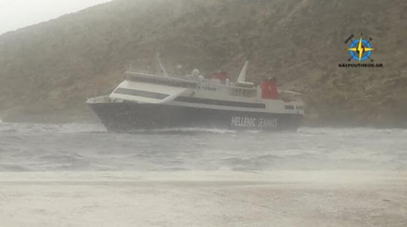 Ο αέρας ήταν πολύ δυνατός και η θάλασσα ανέβαινε στον μώλο. Όπως είναι λογικό, τα πράγματα ήθελαν αυξημένη προσοχή και ετοιμότητα.