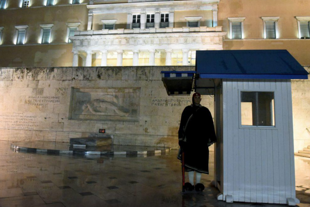 Το μόνο που τους προστατεύει από το κρύο και την βροχή είναι το σκέπαστρο της φρουράς. Ωστόσο, το κρύο ειδικά το βράδυ είναι τσουχτερό για αυτό και οι Εύζωνες φόρεσαν την μακριά κάπα της χειμερινής στολής τους.