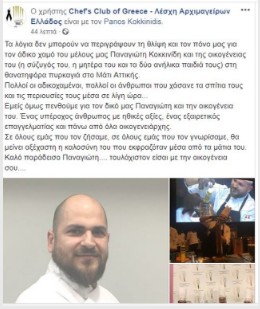 Ανάμεσα στους νεκρούς από την πύρινη λαίλαπα ήταν και ο σεφ, Παναγιώτης Κοκκινίδης με την οικογένειά του.