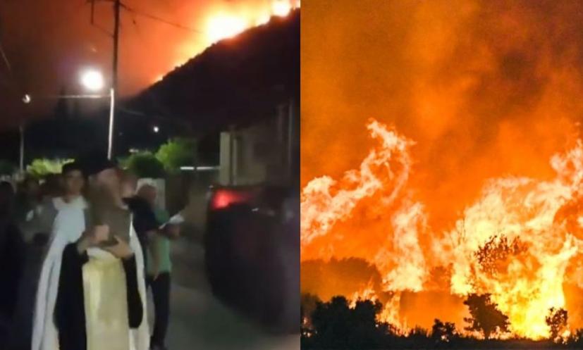 Κάτοικοι του χωριού προεξάρχοντος του ιερέα βγήκαν στους δρόμους κρατώντας ιερές εικόνες και λείψανα προσευχόμενοι για να μπει τέλος στον πύρινο εφιάλτη.