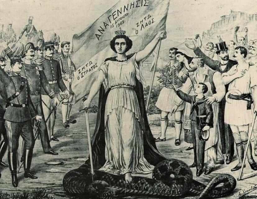 Η στρατιωτική επανάσταση του 1909, γνωστή ως επανάσταση του Γουδή καθώς εκεί συγκεντρώθηκαν οι επαναστάτες αξιωματικοί και υπαγόρευσαν τους όρους τους στην κυβέρνηση και τον βασιλέα, ήταν αυτή που δημιούργησε τη μεγάλη Ελλάδα του 20ου αιώνα. Διέλυσε το παλιό κομματικό σύστημα, έφερε από την Κρήτη τον Ελευθέριο Βενιζέλο, αναδιοργάνωσε και εξόπλισε το στράτευμα που σε τρία χρόνια ήταν έτοιμο για τους βαλκανικούς πολέμους και έφερε γενικό εκσυγχρονισμό στη χώρα.