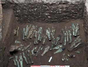 Όπως έχει αναφερθεί μυστήριο καλύπτει το θέμα του τί ήταν τα περίφημα ιερά όπλα πού υπήρχαν μέσα στο άδυτο του ναού του Απόλλωνος, και τα οποία με θαυμαστό τρόπο βρέθηκαν μπροστά από τον ναό όταν έφθαναν στο τέμενος του θεού οι βάρβαροι Πέρσες για να το συλήσουν.