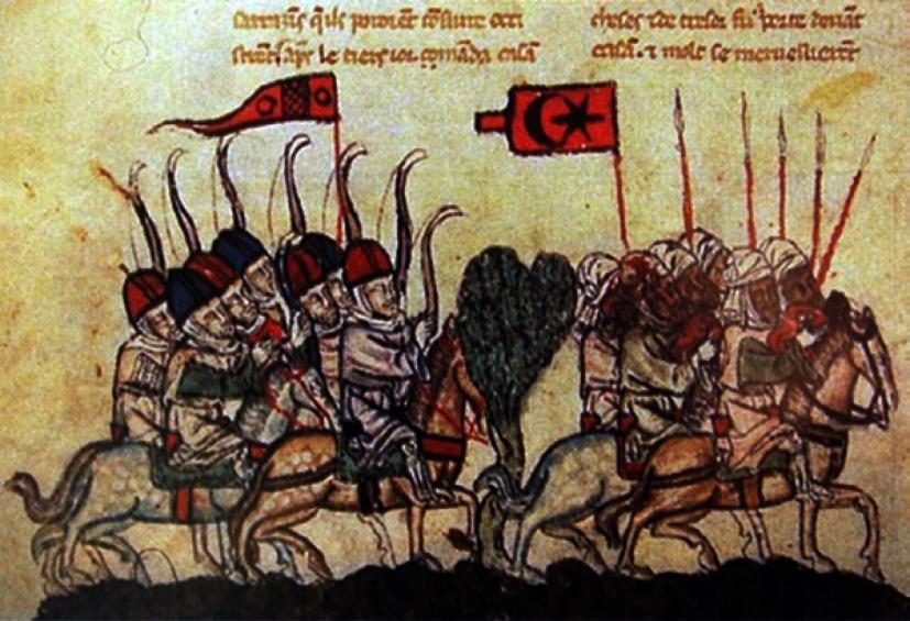 Ειδικά, οι Σελτζούκοι, είχαν υιοθετήσει πλήθος βυζαντινών στοιχείων, και προφανώς συνέβαλαν στην διάδοσή του ή εν πάση περιπτώσει στη διαχρονική του επιβίωση στο χώρο της Εγγύς και Μέσης Ανατολής, μεταξύ των Αράβων. Σε απεικόνιση χειρογράφου του 1299, στη μάχη του Χομς, μεταξύ Μογγόλων και Μαμελούκων, φαίνονται οι τελευταίοι να κρατούν σημαία με την ημισέληνο