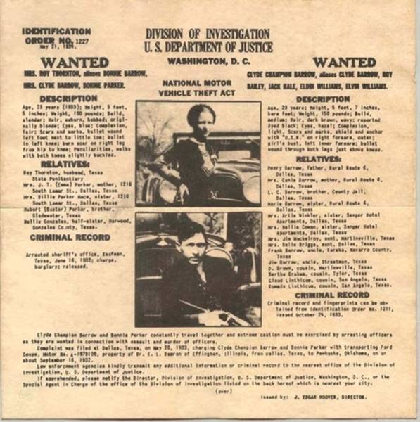 Ήταν 23 Μαΐου του 1934, πρωί, όταν τέσσερις αστυνομικοί από το Τέξας και δύο από τη Λουιζιάνα καταφέρνουν να παγιδεύσουν το αυτοκίνητο των δύο πιο διάσημων εγκληματιών της εποχής: του Κλάιντ Μπάροου και της Μπόνι Πάρκερ. Η ενέδρα δεν στοχεύει στη σύλληψη αλλά στην εκτέλεσή τους. Οι αστυνομικοί γαζώνουν τη Φορντ του ζευγαριού που δεν πρόλαβε να ανταποδώσει τα πυρά (τα όπλα τους βρίσκονταν στο πορτ μπαγκάζ). Η Φορντ έγινε κόσκινο από τις 187 σφαίρες που έριξαν συνολικά οι αστυνομικοί. Μέσα σ’ αυτή βρέθηκαν μια καραμπίνα με κομμένη κάνη, ένα ριβόλβερ, ένα σαξόφωνο κι ένα μισοφαγωμένο σάντουιτς.