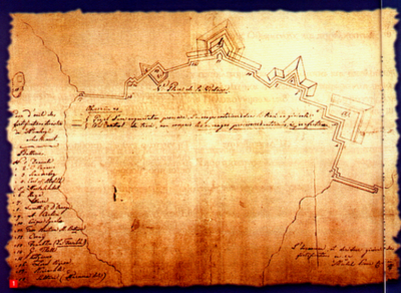 | Σκίτσο του Κοκκίνη για την κατασκευή των οχυρώσεων |
