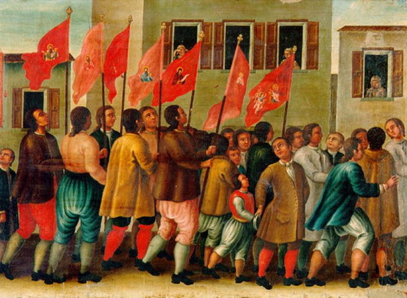 Επανάσταση των ποπολάρων στη Ζάκυνθο. Καίνε τη «Χρυσή Βίβλο» και τα εμβλήματα των ευγενών στην πλατεία του Αγίου Μάρκου, κατά τη διάρκεια των πανηγυρισμών για την κατάλυση της Ενετοκρατίας.