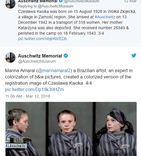 Την έγχρωμη φωτογραφία δημοσίευσε ο λογαριασμός του μνημείου Άουσβιτς στο twitter, δίνοντας και κάποια στοιχεία για το σύντομο παρελθόν της κοπέλας.
