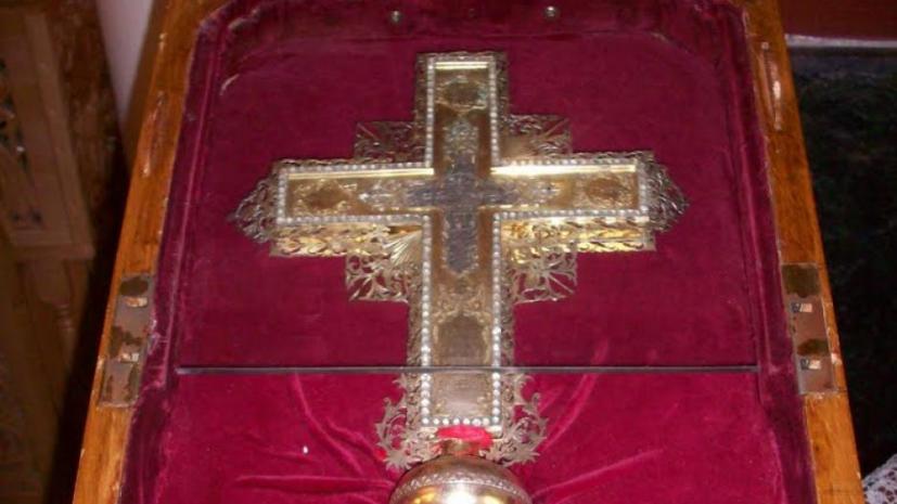 Πρόκειται για ξυλόγλυπτο επιχρυσωμένο σταυρό, ο οποίος περιέχει Τίμιο ξύλο, αξίας περίπου 2,500 ευρώ.