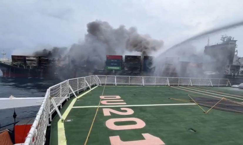 Πέντε σκάφη της ακτοφυλακής, δύο αεροσκάφη Dornier και ένα ελικόπτερο επιχειρούν για την κατάσβεση της πυρκαγιάς στο πλοίο MV Wan Hai 503 με σημαία Σιγκαπούρης, σύμφωνα με το υπουργείο Άμυνας της Ινδίας. Το πλοίο μήκους 269 μέτρων (890 ποδιών), που μεταφέρει 2.128 μετρικούς τόνους καυσίμων, βρίσκεται σε ανοιχτή θάλασσα περίπου 42 ναυτικά μίλια από το λιμάνι Beypore στην πολιτεία Κεράλα. Αξιωματούχοι του υπουργείου Άμυνας έκαναν λόγο για «σοβαρό κίνδυνο ως προς το θαλάσσιο περιβάλλον και τις περιφερειακές ναυτιλιακές διαδρομές. Με τη φωτιά να μην έχει ακόμη σβήσει πλήρως, συνεχίζονται οι προσπάθειες για την εγκατάσταση ενός ρυμουλκού και την απομάκρυνση του πλοίου από την ακτή, προκειμένου να αποφευχθεί μία πιθανή οικολογική καταστροφή. Η κατάσταση παραμένει κρίσιμη και παρακολουθείται συνεχώς», προστέθηκε στην ανακοίνωση. Η Ινδική Ακτοφυλακή (ICG) ανέφερε ότι μέλη της ομάδας διάσωσης μεταφέρθηκαν με βαρούλκο στο φλεγόμενο πλοίο την Τετάρτη, για να βοηθήσουν στις επιχειρήσεις ρυμούλκησης. Ωστόσο, οι συνθήκες στη θάλασσα χαρακτηρίστηκαν ως «δυσμενείς» και παρ’ ότι η πυρκαγιά έχει «σε μεγάλο βαθμό περιοριστεί», τα εσωτερικά καταστρώματα εξακολουθούν να καίγονται. Το πλοίο αναχώρησε από την πρωτεύουσα της Σρι Λάνκα, Κολόμπο, την 7η Ιουνίου και επρόκειτο να φτάσει τη Δευτέρα στο λιμάνι Jawaharlal Nehru της Βομβάης, το δεύτερο μεγαλύτερο λιμάνι εμπορευματοκιβωτίων στην Ινδία. Η ακτοφυλακή έλαβε σήμα κινδύνου από το πλοίο το πρωί της Δευτέρας, το οποίο ανέφερε έκρηξη και πυρκαγιά σε ένα από τα εμπορευματοκιβώτια, η οποία στη συνέχεια εξαπλώθηκε ταχύτατα.