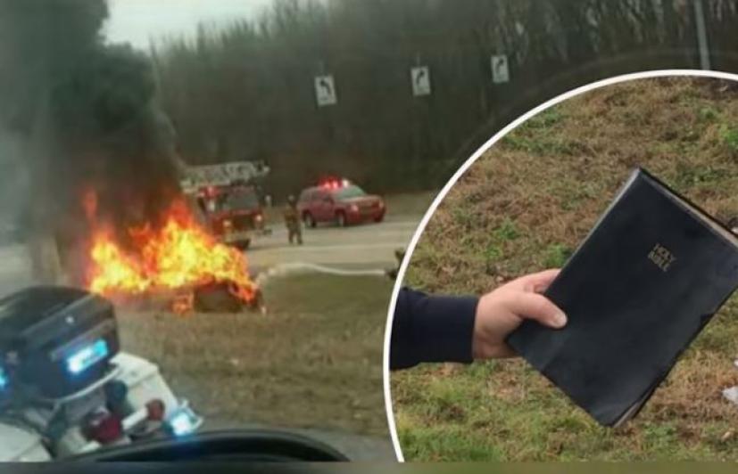 Ένας αστυνομικός και άλλοι οδηγοί αυτοκινήτων τον βοήθησαν να βγει από το αυτοκίνητο. Έσπασαν το παράθυρο και τράβηξαν τον άνδρα.. Παραδόξως, η Αγία Γραφή, που βρισκόταν στο μπροστινό κάθισμα, ήταν το μόνο που δεν επηρεάστηκε από τις φλόγες που έκαψαν αυτοκίνητο.