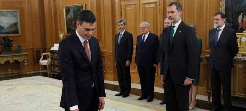 Ο σοσιαλιστής Πέδρο Σάντσεθ ορκίστηκε σήμερα πρωθυπουργός της Ισπανίας, μετά την υπερψήφιση από το κοινοβούλιο της πρότασης μομφής κατά του Μαριάνο Ραχόι και την ανατροπή του συντηρητικού επικεφαλής της κυβέρνησης.