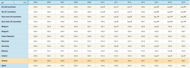 Η Ελλάδα όπως φαίνεται και στον σχετικό πίνακα της Eurostat ακολουθεί αντίστροφη πορεία από τον μέσο όρο της Ευρώπης με την ψαλίδα αντί να κλείνει να ανοίγει. Έτσι ενώ το 2006 αντιστοιχούσαν 102,5 Ελληνίδες για κάθε 100 Έλληνες πέρυσι η σχέση γυναικείου πληθυσμού προς αντρικό είχε διαμορφωθεί στο 106,4 / 100. Σε αυτό φαίνεται ότι έχει συμβάλει σε μεγάλο βαθμό και οι μετανάστευση των νέων (κυρίως ανδρών) για οικονομικούς λόγους στα χρόνια της ύφεσης.