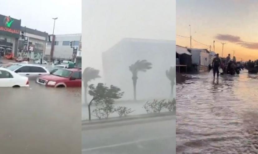Χαρακτηριστικές είναι οι εικόνες από τη δημοφιλή αγορά Al-Bawadi με τους δρόμους να έχουν μετατραπεί σε χειμάρρους και τα καταστήματα να έχουν υποστεί σοβαρές ζημιές.