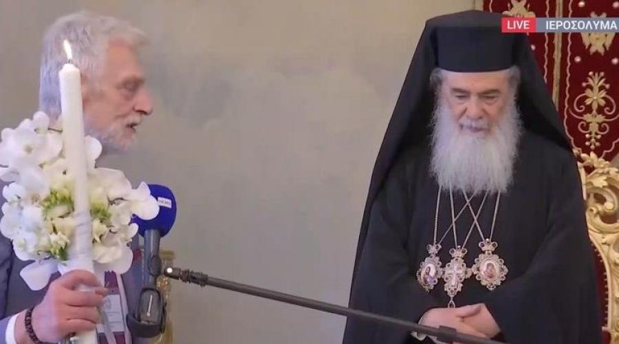 Άγιο Φως: Η παράδοση στην ελληνική αποστολή από τον Πατριάρχη Ιεροσολύμων Θεόφιλο Γ’