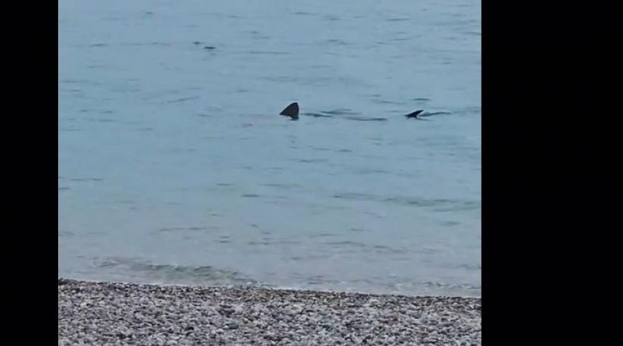 Λουτράκι: Kαρχαρίας κολυμπάει σε ρηχά νερά δίπλα στην παραλία