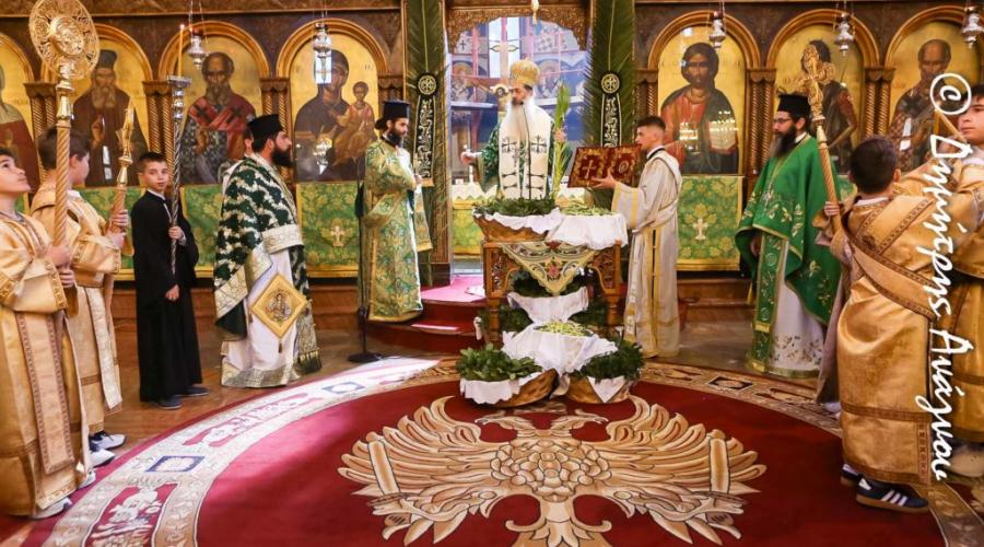 Στον Ιερό Ναό Αναλήψεως του Χριστού Βόλου λειτούργησε σήμερα, Κυριακή των Βαΐων, ο Σεβ. Μητροπολίτης Δημητριάδος κ. Ιγνάτιος, παρουσία μεγάλου πλήθους πιστών, ξεκινώντας την Λειτουργική πορεία προς το Θείο Πάθος.
