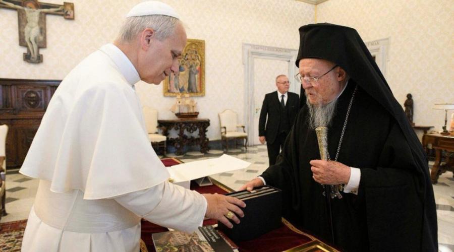 Την πρώτη τους κατ’ ιδίαν συνάντηση και συνομιλία στο Βατικανό είχαν σήμερα ο νέος Πάπας Λέων ΙΔ’ και ο Οικουμενικός Πατριάρχης κ.κ. Βαρθολομαίος ο οποίος εχθές παρέστη στην τελετή ενθρόνισης του ποντίφικα.