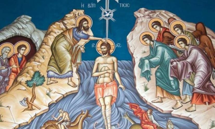 Η ιστορία της Βάπτισης έχει ως εξής: Μετά από θεία εντολή ο Ιωάννης ο Πρόδρομος εγκατέλειψε την ερημική ζωή και ήλθε στον Ιορδάνη ποταμό όπου κήρυττε και βάπτιζε. Εκεί παρουσιάσθηκε κάποια ημέρα ο Ιησούς και ζήτησε να βαπτισθεί.