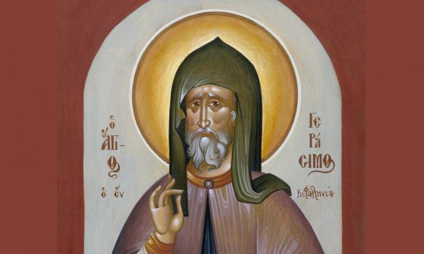 Ο Άγιος Γεράσιμος, γόνος της αριστοκρατικής Οικογενείας των Νοταράδων, γεννήθηκε το 1506 στα Τρίκαλα Κορινθίας. Οι γονείς του ονομάζονταν Δημήτριος και Kαλή. Ο προπάππος του Λουκάς Νοταράς - τελευταίος πρωθυπουργός του Βυζαντίου - ήταν συγγενής εκ μητρός με τον Κωνσταντίνο Παλαιολόγο, το μαρτυρικό Αυτοκράτορα του Βυζαντίου. Αφού έλαβε πλουσιοτάτη παιδεία, περιόδευσε σε όλους τους ιερούς τόπους της Ελλάδας. Πήγε στην Κωνσταντινούπολη και προσκύνησε τους τάφους των προγόνων του. Κατόπιν μετέβη στο Άγιο Όρος και εκάρη Μοναχός όπου και σώζεται το σπήλαιο της ασκήσεώς του στην έρημο της Καψάλας (κελλίον Μεγάλου Βασιλείου).