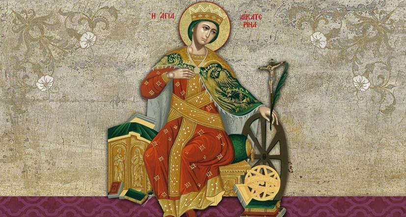 Η Αγία Αικατερίνη αποκαλείται και Νύμφη του Χριστού. Πράγματι, η Μεγαλομάρτυς της Χριστιανοσύνης η μνήμη της οποίας εορτάζεται στις 25 Νοεμβρίου, είναι μια ιδιαίτερη Αγία που γεννήθηκε και έζησε στην Αλεξάνδρεια, επί Ρωμαίου αυτοκράτορα Μαξιμιανού (250-310). Ήταν κόρη του έπαρχου της πόλης Κώνστα και διακρίθηκε για τη σπάνια σοφία και ομορφιά της. Με διαταγή του Μαξιμιανού συμμετείχε σε συζήτηση με 50 φιλοσόφους, γύρω από τη χριστιανική πίστη. Όχι μόνο έπεισε πολλούς από αυτούς με τα επιχειρήματά της, αλλά κατόρθωσε να τους μεταστρέψει στον Χριστιανισμό.