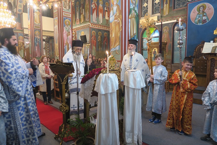 Στον κατάμεστο από πιστούς Ναό, προ της απολύσεως της ακολουθίας, ο Ποιμενάρχης Φθιώτιδος απηύθυνε Θεολογικό Λόγο για το πρόσωπο της Παναγίας αναλύοντας τον στίχο του πρώτου τροπαρίου της Έ ωδής του κανόνος: «η κατακλυσμού της αμαρτίας, σώσασα κόσμον χαίρε Θεόνυμφε» και χαρακτηριστικά ανέφερε: