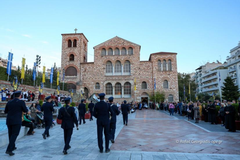 Με επισημότητα πρόκειται να πραγματοποιηθούν και φέτος οι εορταστικές εκδηλώσεις των επετείων της 26ης Οκτωβρίου 1912, ημέρας απελευθέρωσης της Θεσσαλονίκης από τον τουρκικό ζυγό και εορτής του Πολιούχου Αγίου Δημητρίου και της 28ης Οκτωβρίου 1940 στο δήμο Θεσσαλονίκης. Αναλυτικά το πρόγραμμα εορτασμού περιλαμβάνει γενικό σημαιοστολισμό από τις 08:00 της 25ης Οκτωβρίου ως και τη δύση του ήλιου την 28η Οκτωβρίου 2024 και φωταγώγηση των καταστημάτων του δημοσίου, των ΟΤΑ, καθώς και των ΝΠΔΔ και των Τραπεζών κατά τις βραδινές ώρες της 25ης, 26ης, 27ης και 28ης Οκτωβρίου 2024. Την Παρασκευή 25 Οκτωβρίου, στις 11:00 θα γίνει πανηγυρική λιτάνευση των ιερών εικόνων της Παναγίας «Φανερωμένης» και του Αγίου Δημητρίου μαζί με τα λείψανα του αγίου, καθώς και ομιλίες και εκδηλώσεις στα σχολεία. Το απόγευμα, στις 18:30 θα τελεστεί μέγας πανηγυρικός αρχιερατικός εσπερινός, χοροστατούντος του μητροπολίτη Μεσσηνίας κ. Χρυσόστομου, ενώ τον θείο λόγο θα κηρύξει ο αρχιεπίσκοπος Αθηνών και πάσης Ελλάδος Ιερώνυμος. Ανήμερα της 26ης Οκτωβρίου, στις 08:00 θα τελεστεί η έπαρση της σημαίας στο Λευκό Πύργο και στις 11:00 θα ακολουθήσει δοξολογία για την απελευθέρωση της Θεσσαλονίκης, στον Ιερό Ναό του Πολιούχου της Θεσσαλονίκης Αγίου Δημητρίου, προεξάρχοντος του αρχιεπισκόπου Αθηνών, παρουσία της Προέδρου της Δημοκρατίας Κατερίνας Σακελλαροπούλου, με τη συμμετοχή της πολιτειακής, πολιτικής, στρατιωτικής ηγεσίας και των αρχών της τοπικής αυτοδιοίκησης. Στις 18:30 θα τελεστεί στην αίθουσα τελετών του Αριστοτελείου Πανεπιστημίου Θεσσαλονίκης ο επίσημος εορτασμός της ημέρας του Πολιούχου Αγίου Δημητρίου, της 112ης επετείου της απελευθέρωσης της πόλης και του έπους του 1940, με εκφώνηση του πανηγυρικού της ημέρας από τον καθηγητή του τμήματος Φιλοσοφίας και Παιδαγωγικής ΑΠΘ Φιλήμονα Παιονίδη, με τίτλο «Το έπος του ’40 και η θεωρία του Δικαίου Πολέμου». Θα ακολουθήσει μουσικό μέρος από τη χορωδία «Γιάννης Μάντακας» του ΑΠΘ και τη Συμφωνική Ορχήστρα ΑΠΘ. Ωστόσο η είσοδος θα είναι δυνατή μόνο με προσκλήσεις από το Τμήμα Δημοσίων Σχέσεων του ΑΠΘ. Για την Κυριακή 27 Οκτωβρίου έχει προγραμματιστεί κατάθεση στεφάνων στις 10:00 από αντιπροσωπείες μαθητών στο Ηρώο του Γ΄ Σώματος Στρατού, παρουσία του αντιπεριφερειάρχη Μητροπολιτικής Ενότητας Θεσσαλονίκης, του περιφερειακού διευθυντή Πρωτοβάθμιας και Δευτεροβάθμιας Εκπαίδευσης Κεντρικής Μακεδονίας και των προϊσταμένων των οικείων Διευθύνσεων και μια ώρα αργότερα, στις 11:00 οι μαθητές θα παρελάσουν στην οδό Τσιμισκή. Τέλος, στις 12:30 αντιπροσωπείες μαθητών θα καταθέσουν στεφάνια στα μνημεία των Ηρώων, τις Προτομές και τους Ανδριάντες σε διάφορα σημεία της πόλης. Ανήμερα της 28ης Οκτωβρίου, στις 10:30, η πρόεδρος της Δημοκρατίας Κατερίνα Σακελλαροπούλου θα καταθέσει στεφάνι στο Ηρώο του Γ΄ Σώματος Στρατού και στις 11:00 θα ακολουθήσει η μεγάλη παρέλαση πολιτικών, μαθητικών και στρατιωτικών τμημάτων στη Λεωφόρο Μεγάλου Αλεξάνδρου, ενώπιον της ΠτΔ και λοιπών επισήμων.