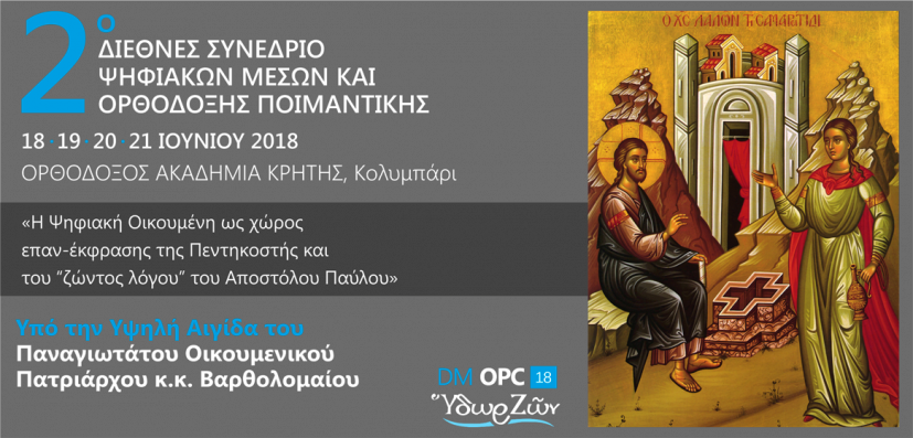 Παρακολουθήστε ζωντανά τις εργασίες της πρώτης ημέρας του 2ου Διεθνούς Συνεδρίου για τα Ψηφιακά Μέσα και την Ορθόδοξη Ποιμαντική DMOPC18 «Ύδωρ Ζων» από την Ορθόδοξη Ακαδημία Κρήτης στο Κολυμπάρι.