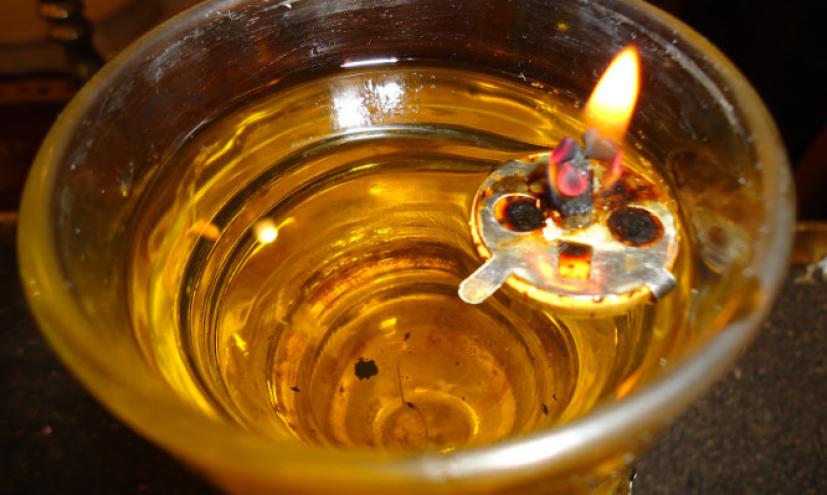 α) ένα κανδήλι με λάδι ελιάς (και λίγο κόκκινο κρασί)
