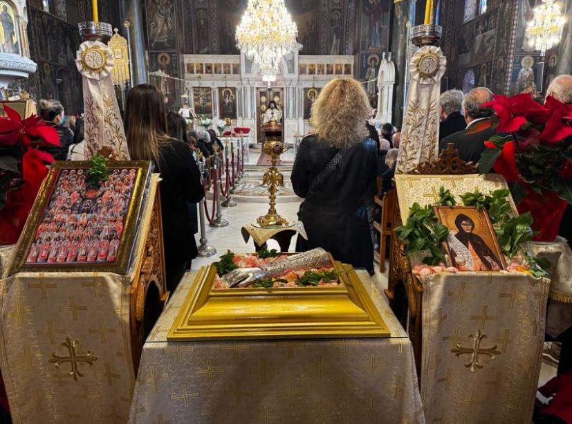 Να σημειωθεί ότι το ιερό Λείψανο, ετέθει εις προσκύνηση στον Ιερό Μητροπολιτικό Ναό των Τρικάλων κατά την ιερά πανηγύρι του το διήμερο 5 και 6 Δεκεμβρίου και στην Καλλιθέα το τριήμερο 7 έως 9 Δεκεμβρίου.