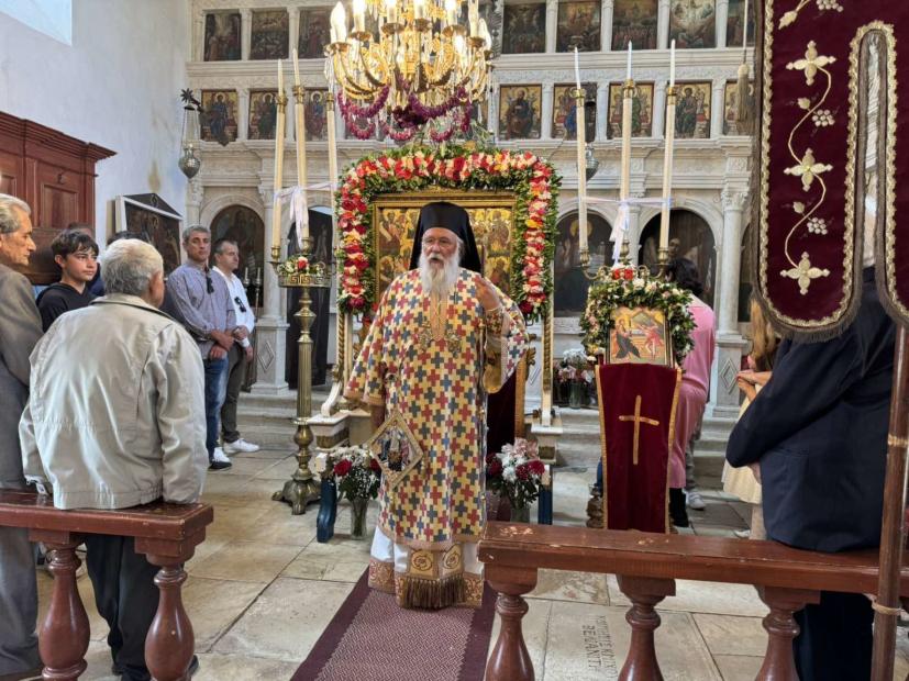 Ο Σεβασμιώτατος ευλόγησε τους παρισταμένους με την τέλεση του Αγιασμού, ενώ με τη συμμετοχή σχολείων και φιλαρμονικών, η λιτανεία συνεχίστηκε παραλιακά έως το πλοίο. Κλήρος, λαός και τοπικοί άρχοντες συνόδευσαν την πομπή.