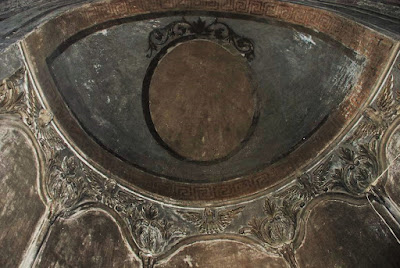 | Η τοιχογραφία της Κοίμησης της Θεοτόκου στο δυτικό τύμπανο του ναού |
