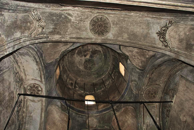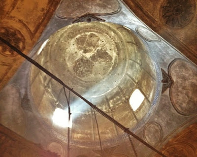 | Τα τέσσερα φωτεινά ανοίγματα στον τρούλο του ναού της Παναγιάς. |