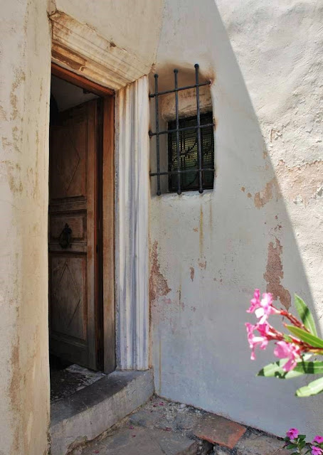 | Η είσοδος με το μαρμάρινο θύρωμα
