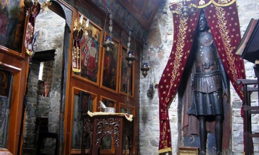 Η υπερμεγέθης ανάγλυφη εικόνα του Αγίου Γεωργίου στην Ομορφοκκλησιά Καστοριάς