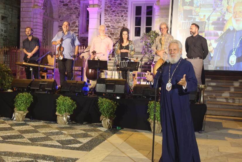 Λαοθάλασσα Συριανών και παρεπιδημούντων παραθεριστών κατέκλυσε απόψε τον αύλειο χώρο του ιστορικού Ιερού Μητροπολιτικού Ναού της Μεταμορφώσεως του Σωτήρος Ερμουπόλεως, όπου παρουσιάστηκε η Επετειακη Συναυλία, με τίτλο «Μικρασία-Χίος-Ψαρά-Σύρος: Μια προσφυγική διαδρομή» στα πλαίσια της έναρξης των εκδηλώσεων του εορτασμού των 200 ετών από την ανέγερσή του και σιγοτραγουδήσαν με τους Καλλιτέχνες κα Κατερίνα Παπαδοπούλου και κ.κ. Χρήστο Τσιαμούλη, Βασίλη Κασούρας, Κυριάκο Γκουβέντα, Βαγγέλη Τσαγανό και Απόστολο Μάτη παραδοσιακά τραγούδια από την Κωνσταντινούπολη, τη Μικρασία και τα νησιά του Αιγαίου. Στην εκδήλωση, την οποία προλόγισε ο Γραμματέας της Ιεράς Μητροπόλεως κ. Αλέξ. Μαρκουΐζος, με λόγο καλολογικό και μεστό επίκαιρων νοημάτων, παρέστησαν ο Σεβσσμιώτατος Μητροπολίτης Σύρου, Τήνου, Άνδρου, Κέας και Μήλου κ. Δωρόθεος Β’ , ο Αρχιερατικός Επίτροπος και Εφημέριοι της Σύρου, ο Συντονιστής Αποκεντρωμένης Διοίκησης Αιγαίου κ. Πολ. Πολυχρονάκης, ο Χωρικός Αντιπρριφερειάρχης Κυκλάδων κ. Γ. Λεονταρίτης, ο Δήμαρχος Σύρου- Ερμούπολης κ. Αλέξ. Αθανασίου, οι Αντιδήμαρχοι κ.κ. Νικ. Σκευοφυλακας, κ. Ιωάννης Μαραγκός, Δημ. Κοσμάς, Πρόεδροι Τοπικών Κοινοτήτων, ο κ. Ευάγγελος Μαραγκός, Δημοτικοί Σύμβουλοι, η κα Θεοδώρα Ράμου, ο Ιωσήφ Μαραγκός, ο Στρατηγός και ο Ταξίαρχος της Ελληνικής Αστυνομίας, ο Διοικητής της 6ης Περιφέρειας Λιμενικού Σώματος, ο Λιμενάρχης Σύρου, ο Εκδότης κ. Αντ. Δελλατόλας, ο Διοικητής του Νοσοκομείου Σύρου και Πρόεδροι τοπικών Συλλόγων, Σωματείων και Φορέων. Προ του πέρατος της Εκδηλώσεως, ο Σεβασμιώτατος κ. Δωρόθεος Β’ συνεχάρη την Περιφέρεια Νοτίου Αιγαίου για την οικονομική κάλυψη των εξόδων της εκδηλώσεως, τον Δήμαρχο και το Δημοτικό Συμβούλιο για την ανάληψη του έργου φιλοτεχνήσεως της προτομής του Ανθίμου Γαζή, τους Καλλιτέχνες και ευχαρίστησε τους συντελεστές της, τον έχοντα την γενική επίβλεψη της προετοιμασίας και διοργάνωσης Αρχιερατικό Επίτροπο Σύρου, Πρωτοπρ. Φλαβιανό Αλμπέσκου, τον Περιφερειακό Τηλεοπτικό Σταθμό «Syros TV1» και τα τοπικά μέσα έντυπης και ηλεκτρονικής πληροφόρησης, και τους πολυπληθείς ακροατές της, προς τους οποίους ευχήθηκε για τον αρχόμενο μήνα της Παναγίας Αύγουστο και η Δημοτική Σύμβουλος κα Χρυσοβαλάντη Μονογυιού προσέφερε εξ ίδιων γλυκίσματα.