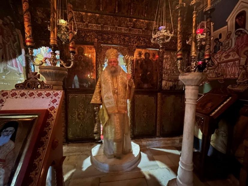 Το πρωί της Τετάρτης 15 Οκτωβρίου 2025, ο Σεβασμιώτατος χοροστάτησε στον Όρθρο στο Καθολικό της Ιεράς Μονής, ευλόγησε τους προσφερθέντες άρτους και προεξήρχε της Θείας Λειτουργίας.
