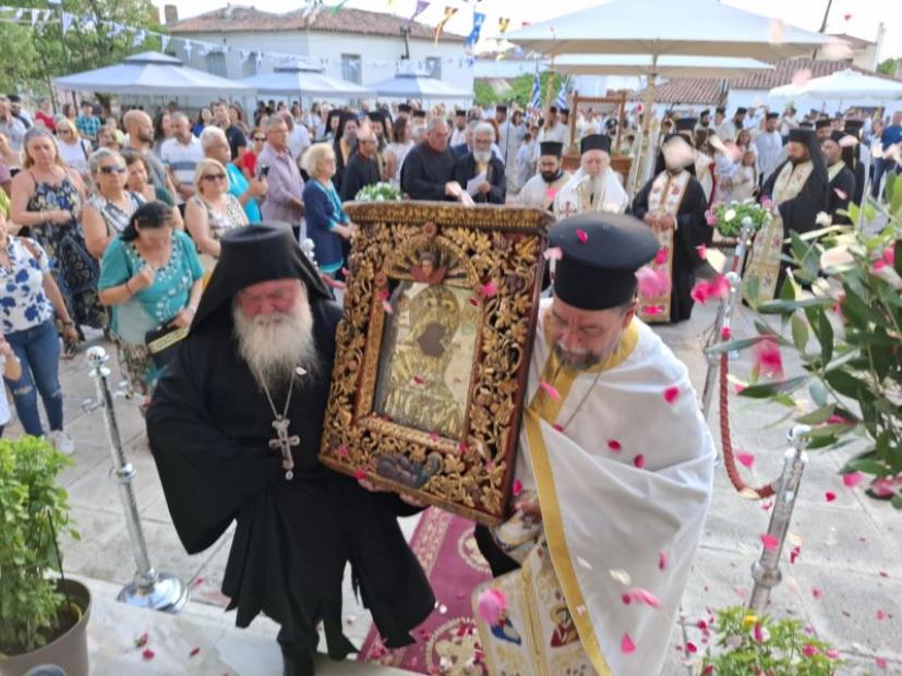H Ενορία Κοιμήσεως Θεοτόκου Βασιλικού Χαλκίδος, υποδέχθηκε το ιερό και θαυματουργό εικόνισμα της Υπεραγίας Θεοτόκου, της επονομαζομένης Χοζοβιωτίσσης, εφέστιο εικόνα της ομωνύμου Ιεράς Μονής της Αμοργού.