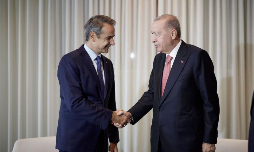 Η συνάντηση μεταξύ Κυριάκου Μητσοτάκη και Ταγίπ Ερντογάν ήταν σύντομη λόγω των χρονικών περιορισμών που υπάρχουν εν μέσω της Συνόδου του ΟΗΕ και ήταν σε καλό κλίμα, αναφέρουν κυβερνητικές πηγές. Στο τετ α τετ των δύο ηγετών «επιβεβαιώθηκε η βούληση και των δύο πλευρών για διατήρηση του θετικού κλίματος, τα Μέτρα Οικοδόμησης Εμπιστοσύνης τα όποια έως τώρα αποδίδουν καρπούς, ενώ συζητήθηκαν και περιφερειακά και παγκόσμια θέματα» αναφέρουν οι ίδιες πηγές. Όσον αφορά στο ζήτημα ΑΟΖ και υφαλοκρηπίδας, κυβερνητικές πηγές επισημαίνουν ότι «οι υπουργοί Εξωτερικών των δύο χωρών θα εκτιμήσουν πότε θα μπορέσουν να ανοίξουν τη συζήτηση, στο πλαίσιο του πολιτικού διαλόγου που συνεχίζεται μεταξύ Ελλάδας και Τουρκίας». Συμφωνήθηκε ότι το επόμενο Ανώτατο Συμβούλιο Συνεργασίας να πραγματοποιηθεί τον Ιανουάριο του 2025 στην Άγκυρα στη βάση της Διακήρυξης των Αθηνών», ανέφερε Ανώτατη κυβερνητική πηγή και πρόσθεσε ότι «ο Τούρκος υπουργός Εξωτερικών, Χακάν Φιντάν αναμένεται να επισκεφθεί την Ελλάδα για να προετοιμάσει το έδαφος για τη σύγκληση του Συμβουλίου σε συνεργασία με τον Έλληνα υπουργό Εξωτερικών, Γιώργο Γεραπετρίτη». Σύμφωνα με κυβερνητικές πηγές οι δύο πλευρές συμφώνησαν να εμβαθύνουν τη συνεργασία τους στο μεταναστευτικό, έτσι ώστε να βελτιωθεί η συνεργασία μεταξύ των αρμόδιων αρχών των δύο χωρών. «Στο πλαίσιο αυτό θα επιδιώξουμε να συναντηθούν οι υπουργοί Μετανάστευσης Ελλάδας και Τουρκίας» ανέφερε Ανώτατη κυβερνητική πηγή. Για το Κυπριακό «η ελληνική πλευρά επανέλαβε τις πάγιες θέσεις Αθήνας και Λευκωσίας, επισήμανε την ανάγκη επανέναρξης του διαλόγου μεταξύ των δύο πλευρών υπό την αιγίδα των Ηνωμένων Εθνών και ότι υποστηρίζει πλήρως τις προσπάθειες του Γενικού Γραμματέα του ΟΗΕ για τριμερή συνάντηση» αναφέρει Ανώτατη Κυβερνητική πηγή. «Οι τουρκικές θέσεις είναι γνωστές. Παραμένουμε αισιόδοξοι» ανέφερε η ίδια πηγή. Μετά την τριμερή συνάντηση Ελλάδος-Κύπρου-Γαλλίας, ο Κυριάκος Μητσοτάκης αναμένεται να συναντηθεί με τον πρόεδρο της Κυπριακής Δημοκρατίας, Νίκο Χριστοδουλίδη για να τον ενημερώσει για το περιεχόμενο της συνάντησής του με τον Τούρκο πρόεδρο, Ταγίπ Ερντογάν.