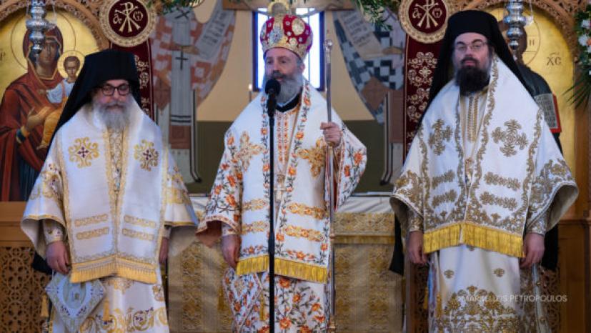 Στον πανηγυρίζοντα ομώνυμο Ιερό Ναό ιερούργησε, το πρωί της Τετάρτης, 6 Αυγούστου, ο Σεβασμιώτατος Αρχιεπίσκοπος Αυστραλίας κ. Μακάριος, με συλλειτουργούς τον επιχώριο Επίσκοπο Χώρας κ. Ευμένιο, τον Επίσκοπο Μελβούρνης κ. Κυριακό και κληρικούς των Επισκοπών Χώρας και Μελβούρνης, συμπεριλαμβανομένου του Ιερατικώς Προϊσταμένου του Ι.Ν. Μεταμορφώσεως του Κυρίου, π. Γεωργίου Φράγκου.