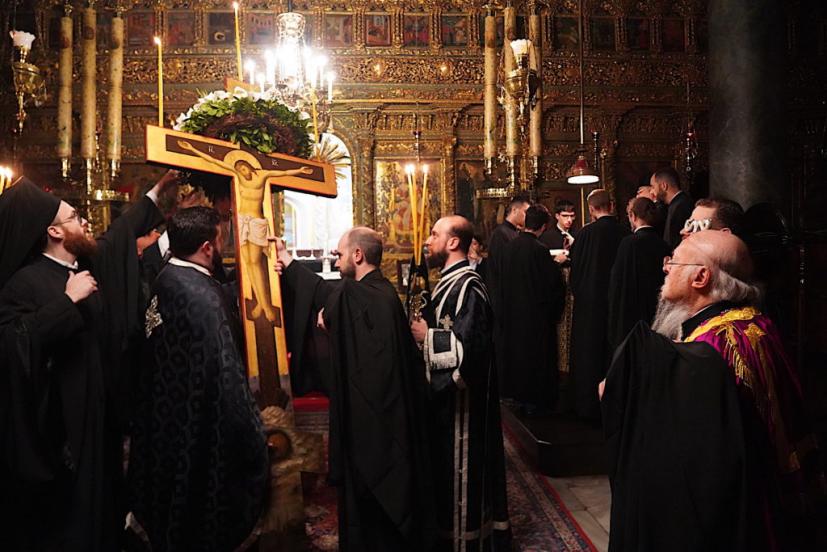 Ο Οικουμενικός Πατριάρχης κ.κ. Βαρθολομαίος χοροστάτησε, χθες, στην Ιερά Ακολουθία των Αγίων Παθών του Κυρίου στον Πάνσεπτο Πατριαρχικό Ναό. Ο Πατριαρχικός Ναός και όλο το Πατριαρχείο τυλίχθηκαν στο σκοτάδι κατά την περιφορά του Εσταυρωμένου, με τη συγκίνηση όλων να κορυφώνεται. Παρέστη πλήθος πιστών από την Πόλη και το εξωτερικό.