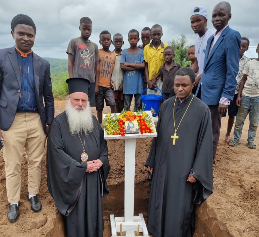Θεμελιώθηκε ο πρώτος ενοριακός Ναός εις τιμήν του νεοφανούς Αγίου Γερασίμου του Υμνογράφου στην πόλη Κέγκε. Ανήμερα της εορτής του Αγίου Γερασίμου του Υμνογράφου ο Μητροπολίτης Κινσάσας κ. Θεοδόσιος. Ο Σεβασμιώτατος διένειμε σε όλους, σταυρούς που απέστειλε ο Καθηγουμένος της Ιεράς Μονής Μεγίστης Βατοπεδίου Γέροντας Εφραίμ.