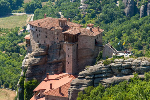 Tourists at the Great Meteoron Monastery, Meteora, Greece on July 15, 2016. / Τουρίστες στην Ιερά Μονή Μεγάλου Μετέωρου, 15 Ιουλίου 2016.«Γύρω από την Μονή Ρουσάνου υπάρχουν 16 αρχαίες σπηλιές και άλλα πέντε λειτουργικά μοναστήρια. Η Μονή Μεγάλου Μετεώρου στεγάζει τα κρανία μοναχών που ζούσαν εκεί, μαζί με ζωντανές ζωγραφιές και φούρνο ψωμιού του 14ου αιώνα. Οι περισσότερες εκκλησίες υπέστησαν ζημιές από τις λεηλασίες και πολέμους τον 20 αιώνα, αλλά από τότε έχουν αποκατασταθεί», σημειώνει.