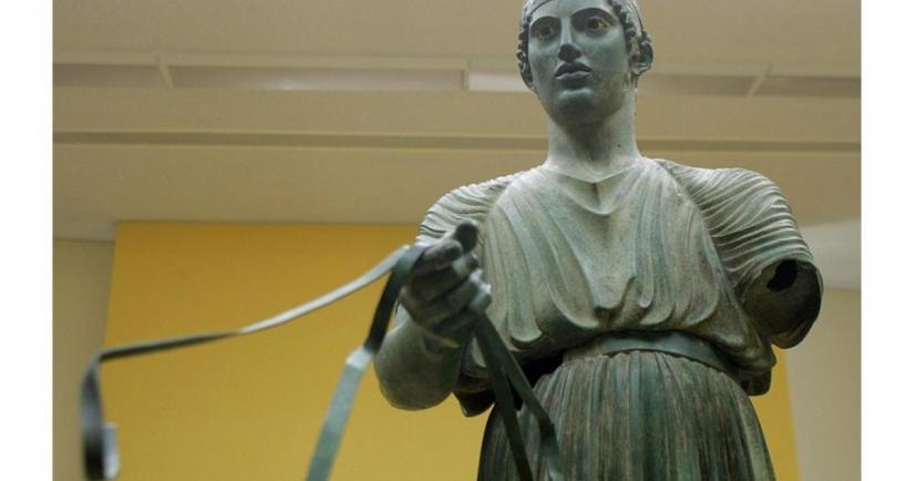 Τα μεγάλα χάλκινα γλυπτά, ελληνικά και ρωμαϊκά, είναι εξαιρετικά σπάνια. Η κ.Ντεσάμπ θα τονίσει στην ομιλία της ότι ο Ηνίοχος των Δελφών, που αναγνωρίζεται ως ένα από τα σημαντικότερα αριστουργήματα της αρχαίας γλυπτικής, καταλαμβάνει, από την αποκάλυψή του το 1896, μια προνομιακή θέση. Αλλά αν και το σύμπλεγμα γλυπτών στο οποίο ανήκε έγινε αντικείμενο πολλών μελετών, στιλιστικών και επιγραφικών, αν και γνωρίζουμε τη χρονολόγησή του εδώ και λίγα χρόνια, την αρχική θέση του στο ιερό του Απόλλωνα και την ταυτότητα αυτού που το πρόσφερε (Πολύζαλος, τύραννος της Γέλας στη Σικελία), δεν έχουν γίνει για περισσότερο από έναν αιώνα παρά επιφανειακές τεχνολογικές εξετάσεις του γλυπτού.