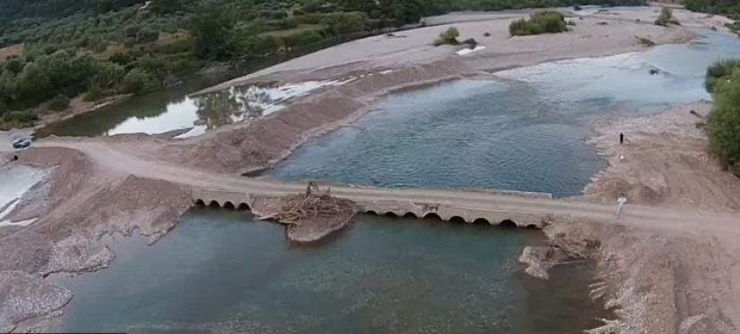 Γκρεμίστηκε η προσωρινή γέφυρα που ενώνει το Τρίκορφο Ναυπακτίας με το χωριό Παραδείσι του Δήμου Αγρινίου από τα ορμητικά νερά που σχηματίστηκαν λόγω της «Πηνελόπης».